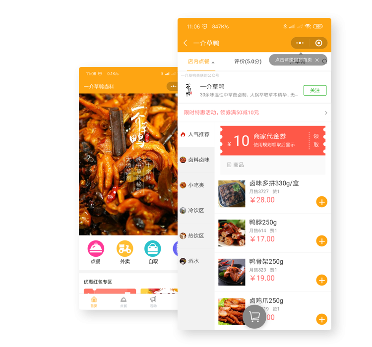 類似于美團(tuán)、大眾點(diǎn)評,具有排隊(duì)、預(yù)約、點(diǎn)餐及點(diǎn)評功能,掃碼即可點(diǎn)餐,無需服務(wù)員參與,下單自動(dòng)出票。隨著“附近的小程序”功能的推出,小程序成為餐飲行業(yè)重要的客戶流量渠道。