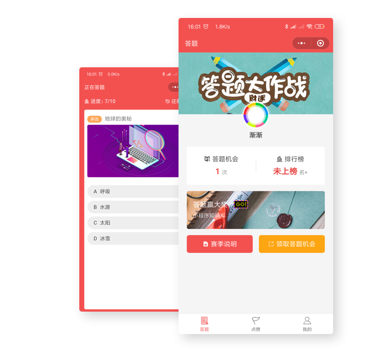 全民答題,瘋狂互動,適用于用戶拉新,快速低成本獲取新用戶