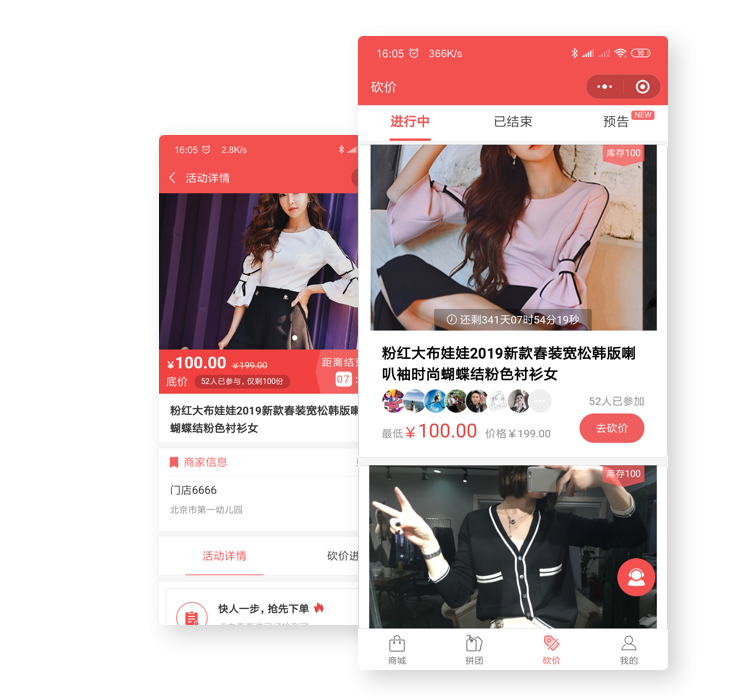 微砍價(jià)是一款邀請好友協(xié)助為商品砍價(jià)的模塊,無論是用于新店宣傳還是品牌傳播,無論是線上商城還是線下實(shí)體店,都可以用一款價(jià)格誘人的產(chǎn)品,通過微信好友互動(dòng),獲得指數(shù)級傳播效果,砍價(jià)商品任意設(shè)置砍價(jià)時(shí)間,次數(shù),庫存和價(jià)格,幫助商家輕松做營銷。