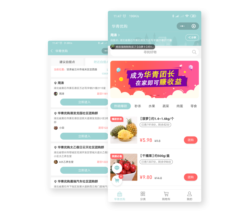 社區(qū)團(tuán)是商品營銷和售賣的一種方式,通過社交關(guān)系鏈分享傳播,可自由設(shè)置開團(tuán)人數(shù),開團(tuán)價(jià)格。用戶在分享時(shí),小程序卡片上可以做到實(shí)時(shí)顯示當(dāng)前的拼團(tuán)信息,比如已經(jīng)有多少人參與拼團(tuán),現(xiàn)在的價(jià)格是多少等,比傳統(tǒng)h5有更好的傳播效果。